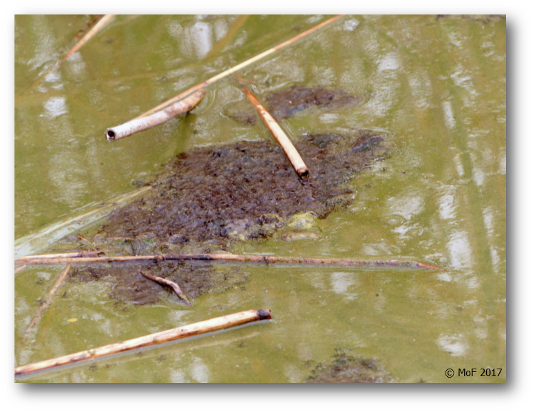 Vattnet såg ut som ärtsoppa. En tjock grön sörja med några bruna blaffor som antagligen bestod av förruttnade ”alger”. Urk! Hela strandkanten såg lika bedrövlig ut.