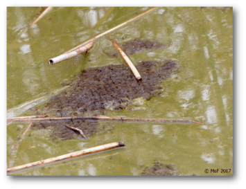 Eftersom vinden en längre tid har legat på från ost/sydost har mängder med ”blågröna alger” (cyanobakterier) samlats just i Uddens strand. Det är sju år sen senast ser jag i mitt bildarkiv, i regel brukar det röra sig om strimmor eller mindre ansamlingar.