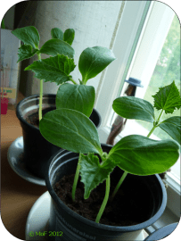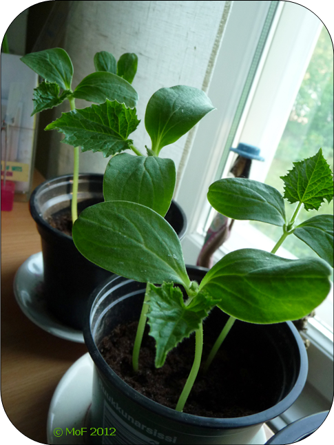 Idag var det dags för gurkplantorna att få flytta ut i det fria. Jämfört med i fjol den här dagen fanns det en hel del att önska i fråga om värme, men jorden var lagom fuktig och solen gjorde sitt bästa så jag hoppas dom ska frodas.