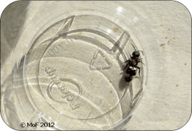 Med min specialfälla – ett plastglas som jag täcker med en pappbit – fångade jag den lilla filuren som jag hittade i köket idag och bar ut den. Den hann inte ens bli upprörd, bara dammig. Jag borde kanske städa inomhus i stället för att bara feja och putsa ute?