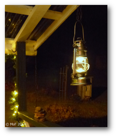 Han hade dessutom med sig en stormlykta med LED-ljus avsedd för Tallmo och frågade om jag också ville ha en sån. Jag svarade nekande, men ångrade mig ett par dar senare då jag såg den i funktion, så i måndags in­ves­te­ra­de jag i en sån.