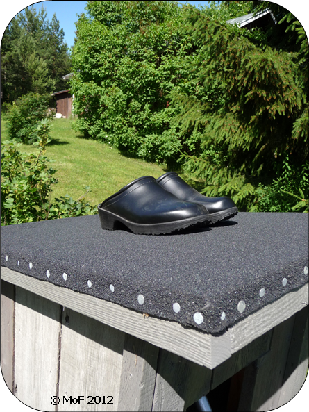 Det blev lite spill och kladd, men det mesta hamnade där det skulle. Så gott som hela pytsen gick åt innan bryggan var färdigmålad, så nu väntar burken på att bli förd till sopstationens avdelning för problemavfall så småningom.