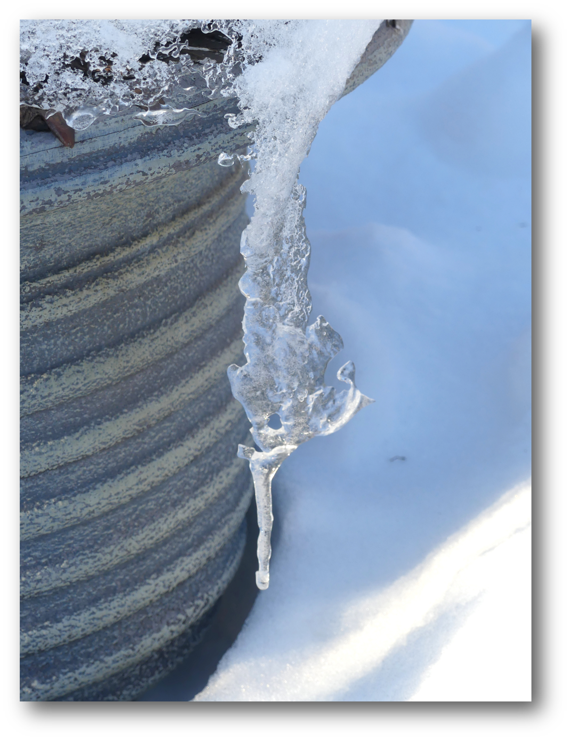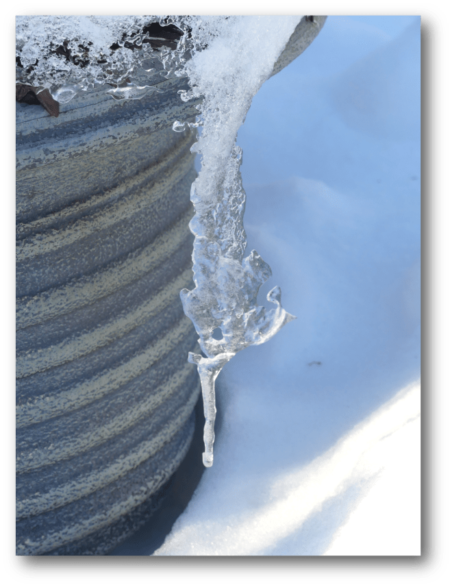 När jag hämtade posten på förmiddagen konstaterade jag som vanligt så här års att kombinationen varm sol dagtid och kalla nätter är en katastrof för väglaget. Den förra sandningen är nu övertäckt av ett tjockt lager is. Redan igår då Grisen/Tvillingen åkte hem var det ”svajigt” nere i kurvan rapporterade hon, men klarade lyckligtvis av att hålla sig på vägen.