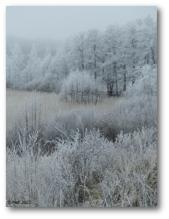 I går och i dag har naturen bjudit på ett sagolandskap med dimma och rimfrost. 😊