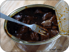 Ett av fynden i skafferiet bestod av bläckfisk i kryddsås (bäst före 31.12.2012) som jag hade glömt att jag hade köpt. Det har jag aldrig testat tidigare så jag öppnade burken till kaffet och smörgåsarna.
