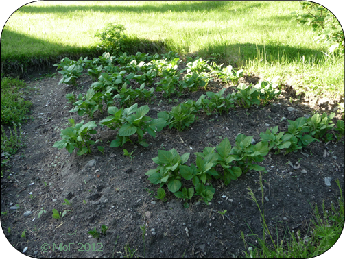 Jag hittade också några hundlokor som försökte gömma sig bland plommonträden och tog en titt på mina ”odlingar”. Potatisen växer så det knakar och verkade nöjd över den himmelska bevattningen den fick i ett par dar.