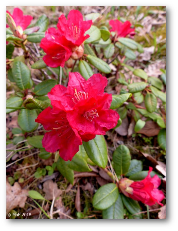 Härom dagen noterade jag nåt rött i ögonvrån när jag gick ut. Då jag vände på huv’et såg jag till min stora förtjusning att lilla Elvira har slagit ut sina bedårande, djupröda blommor. Visst är hon tjusig?