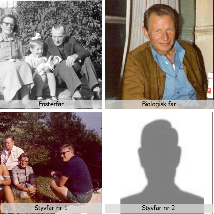 Styvfar nr 1 (till höger) kände jag bara i fem år, därefter tog styvfar nr 2 vid. Honom har jag ingen bild på längre. På vigselfotot var han förstås med, men jag klippte bort honom omgående. Det säger ju en del om vår relation.