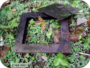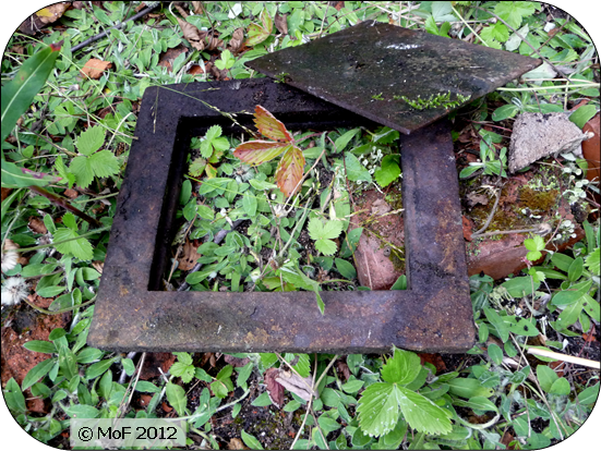 Medan jag trampade omkring bland dom mosstäckta teglen stötte jag på resterna av en spislucka. Dom är nu förflyttade till grovsoporna och får följa med till avfallsstationen så småningom.
