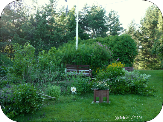Två timmar senare var det klart. Tre högar med kapade syrener hade jag åstadkommit. Och väldigt luftigt blev det runt träd­gårds­möb­ler­na om man uttrycker sig snällt. 😀