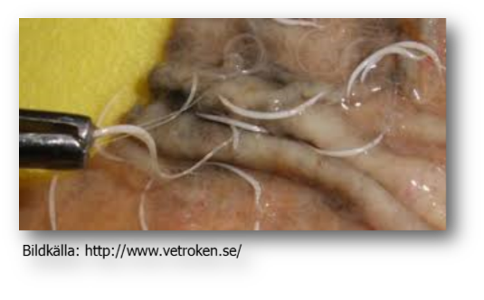 Det är förstås avmaskningsmedlet som har börjat verka, men det är första gången jag har sett en mask komma ut den vägen. Helt klart äckligare än både fästingar och älgflugor! Den fick avsluta sina dagar i spisen.