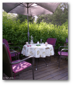 På onsdagen medgav väderleken att våra besökare kunde dricka kaffe i bersån. Husses son med partner gjorde premiärbesök på Udden. Dom hade heller inte förstått att man är lika välkommen tomhänt… Med sig hade dom en hel kasse med presenter till både Mia och oss. Tack igen! 🙂