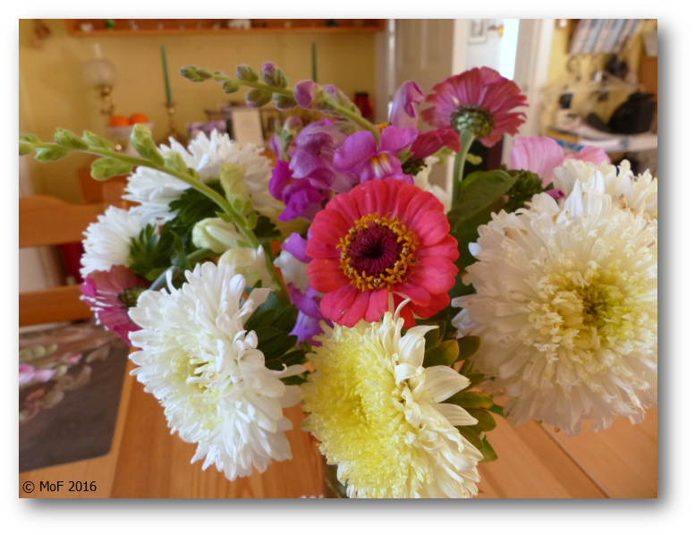 Med mig hem hade jag också vallmofrön och en stor bukett sensommarblommor från hennes trädgård. Inte bara trevlig utan också oerhört generös således. 🙂