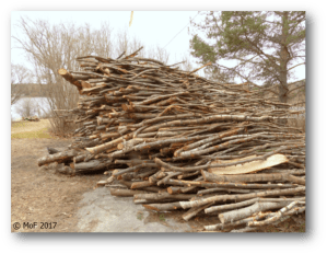 Om man räknar med ett timpris på 20 € för ar­bet­sti­den är den här vedhögen utan tvekan den dyraste som nånsin förekommit på Udden. För­hopp­nings­vis går det att få till en lång avbetalningsplan när fakturan kommer. 😉