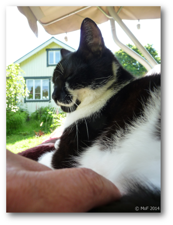 Efter kundbesöket parkerade jag mig i hammocken med Husses bok och somnade så skönt efter några sidor tills jag vaknade av att Mia hoppade upp på magen. Sen låg vi och slöade båda två en stund till.