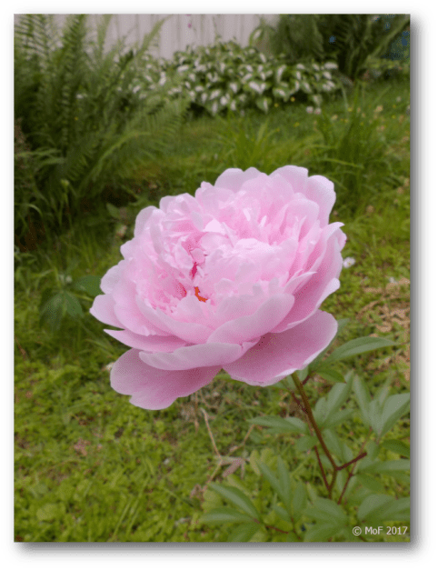 Ett mirakel har skett – min pion blommar! Det gjorde den senast 2013. Den trivs inte där den står, men jag har ingen bättre växtplats att erbjuda den så jag får glädjas åt dom enstaka gånger den orkar blomma.