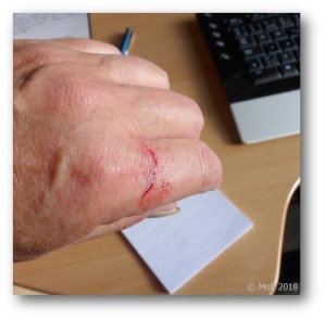 Allt gick bra ända tills jag skar mig i fingret. Husse undrade hur i all världen jag bar mig åt för att lyckas med det?