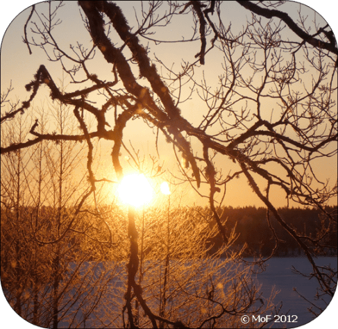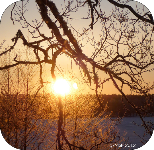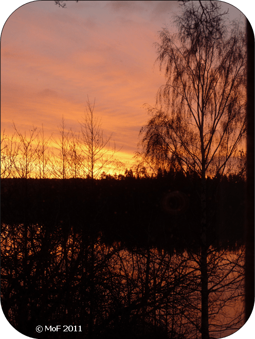 Utsikt från Uddens södra fönster kl 07.30. Solen höll sig framme resten av dagen också. 🙂