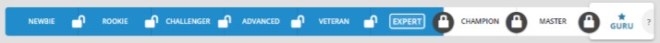 Det tog ett tag innan jag fick kläm på hur det fungerar, men nu är jag varm i kläderna. Beroende på tävlingsresultaten avancerar man i nio steg från nybörjare till guru.