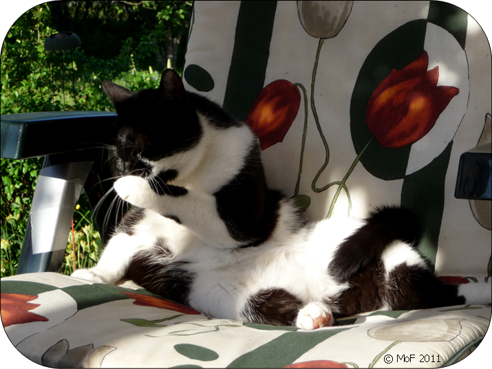 Aldrig mer den veterinären – eller åtminstone inte förrän hon lärt sig ta blodprov på en katt. Jag har full förståelse för att alla är noviser i början, men om hon tvivlade på sin förmåga kunde hon ha sagt det och avstått tycker jag. Vår ordinarie veterinär är utan tvekan en pärla, vilket jag redan tidigare har talat om för henne.  🙂