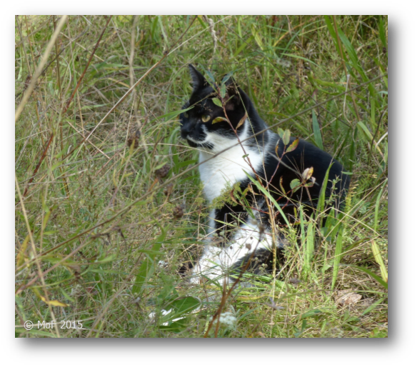 Strax innan dagens besökare anlände råkade jag vara ute så jag hörde Mias ”kampljud”. Ljudet hördes nerifrån flyet, så jag klappade i händerna för att skrämma eventuella fiender och sprang genast till backkrönet för att se efter vad som pågick.