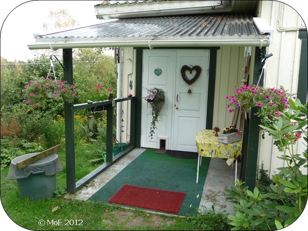 Jag beslöt att nådatiden för utemöblerna i bersån var till ända och bar in dom i boden efter att ha möblerat om där för att ge plats. Stolsdynorna fick också inta vinterförvaret och när jag ändå var i farten tyckte jag det var lika bra att göra höst på trappan också.