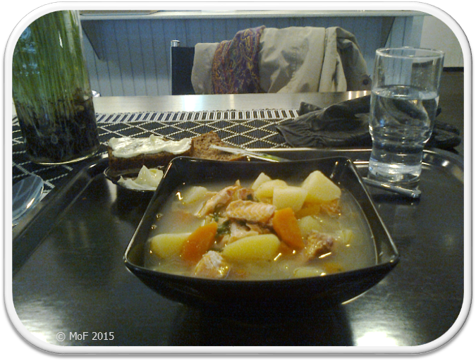 I torsdags hade jag tid hos bilsjukhuset för benbyte – Silverpilen behövde som bekant nya hundben. Medan jag väntade passade jag på att äta fisksoppa på Holmbergs café.