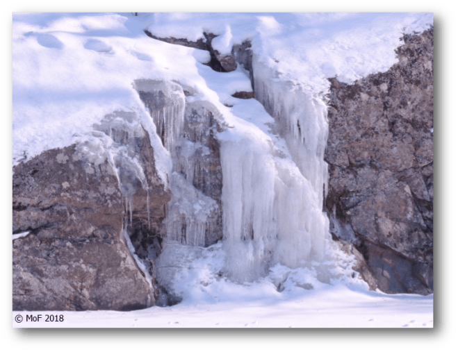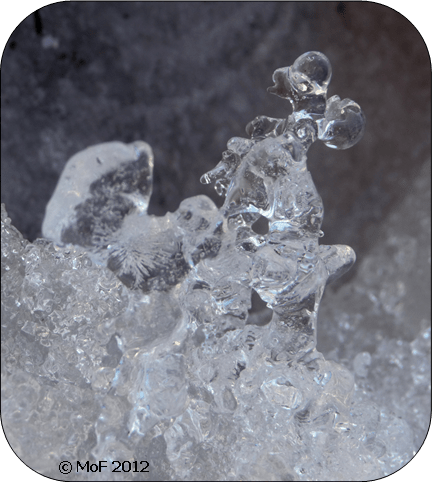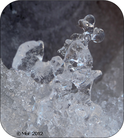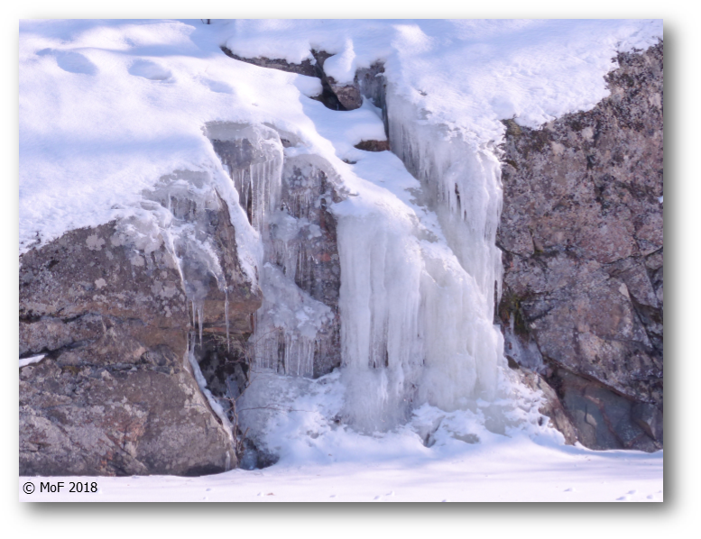 Solen värmde skönt vid uthuset, så jag parkerade mig på tröskeln till vedlidret en stund och begrundade min fridfulla tillvaro medan jag letade bildmotiv. Inom kort hade jag hittat flera fantastiska konstverk i is som jag gärna ville föreviga. Här nedan ser du ett av dom. Visst är det vackert?