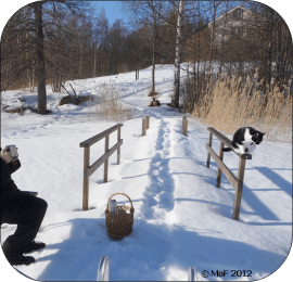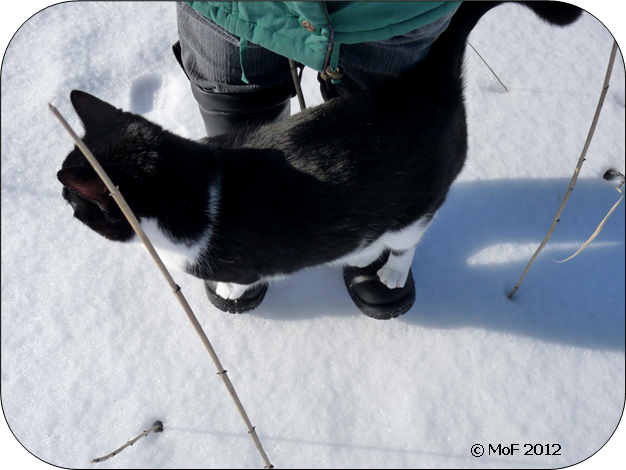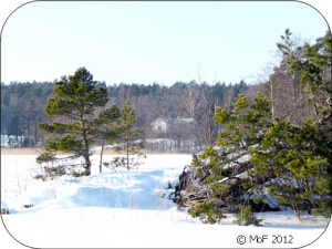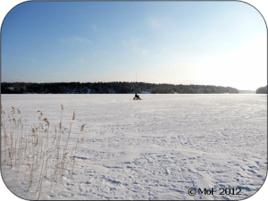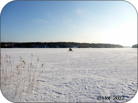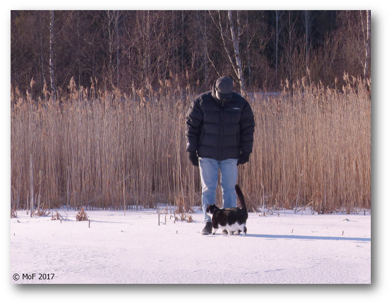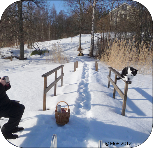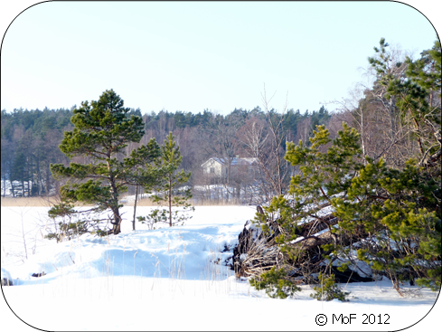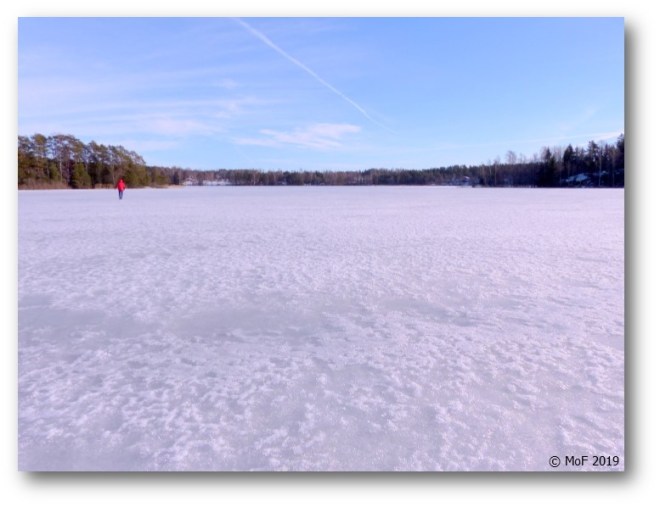Trots snön gick det bra att ta sig fram. Under nysnön låg ett lager med skare som bar hyfsat. Om det inte hade blåst hade promenaden varit riktigt behaglig. Nu gick vi halva vägen i motvind som verkligen bet i kinderna.