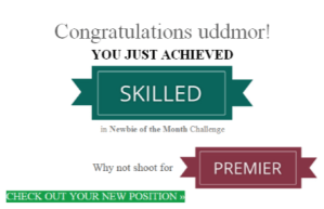 Och faktiskt, tillräckligt många har röstat på mina bilder för att jag skulle uppnå statusen ”Skilled”. Före den fanns ett par nivåer som jag alltså passerade. Kul. Det är bara ett par dar kvar innan tävlingen är slut så jag lär antagligen få nöja mig med den nivån, men vackert så.