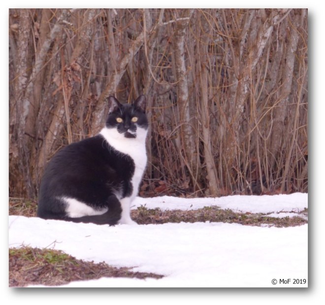 Efter den senaste tidens töande har allt fler snöfria fläckar uppenbarat sig. Det uppskattar Mia. 🙂 I söndags föredrog hon att vänta på oss på bar mark i stället för att följa med ut på isen.