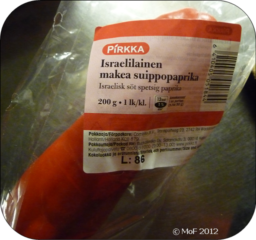 Idag upptäckte jag till min bestörtning att jag (och Kesko) stöder Israel! Om jag hade läst lite noggrannare på förpackningen hade jag aldrig köpt israelisk paprika.