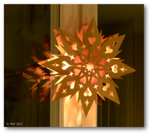 Då fick jag syn på manschetten. Den låg ovanpå en av mina plastbackar så den fick förstås följa med ner. Efter att ha ersatt fönsterlampan med den som tillhör adventsstjärnan, kollade jag att lampan lyste. Det gjorde den, så jag släckte och trädde in den i stjärnan.