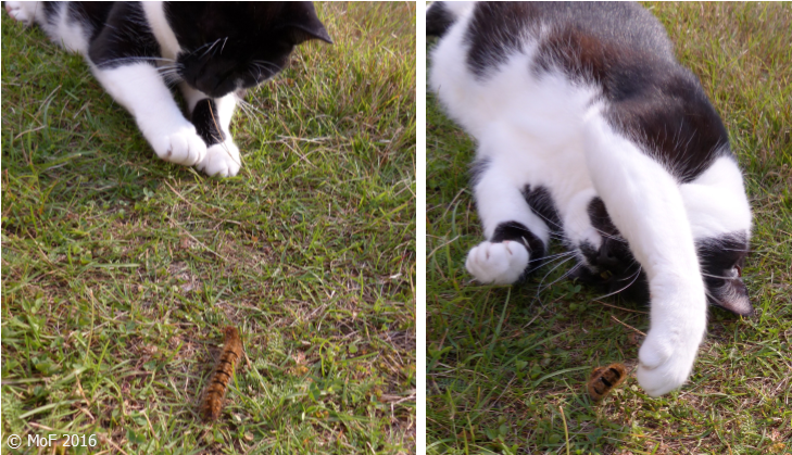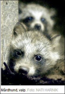 Tidigare har Mia undvikit mårdhundarna så snart hon fått vittring på dom, men den här situationen var ju lite annorlunda. Eller så har hon vant sig vid deras lukt? Hur som helst slutade mötet lyckligt för alla parter den här gången.