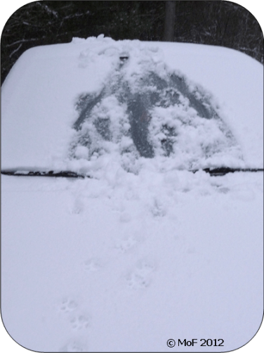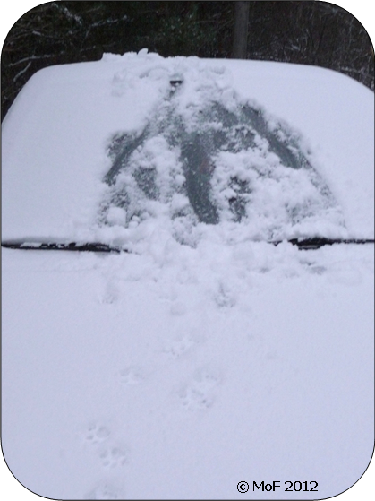 Idag var Mia hygglig nog att hjälpa till med att röja snön från Silverpilen. Så länge bilen var smutsig och snöfri kunde hon utan problem ta sig upp på biltaket, men nu är underlaget klart besvärligare. Hon listade ut att snön måste bort först innan hon skulle kunna få grepp för tassarna. Smart kisse. 🙂