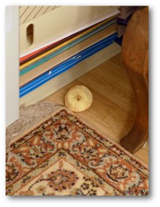 Före jul fick vi en låda äpplen av en av styrelseledamöterna i hembygdsföreningen. När det blev kallt, tog vi in den och ställde den på golvet i vardagsrummet. Jag är inte stormförtjust i äpplen, så det är mest Husse som har ätit av dom, men han fick oväntad konkurrens.