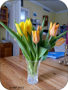 Jag tror nästan jag köpte blommor för lika mycket som jag köpte mat. Jag kunde inte låta bli att stoppa ner både vanliga och mininarcisser plus en bukett tulpaner i varukorgen.