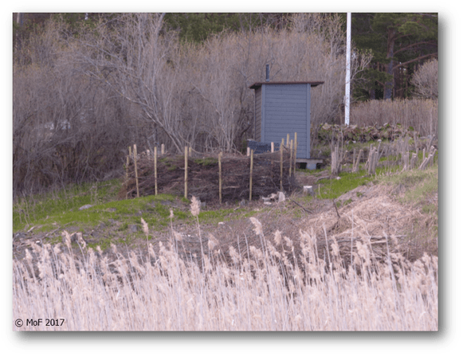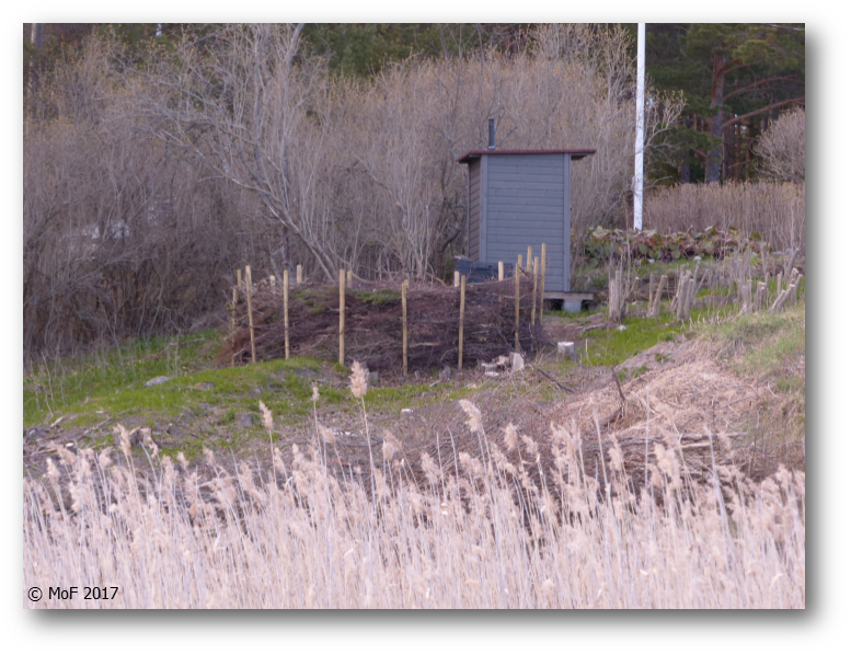Vid 14-tiden idag blev staketet klart. En ny sevärdhet på Udden! Fast egentligen är det inget staket. Oxen/Tvillingen träffade huvudet på spiken igår kväll när han gick förbi och konstaterade att det är en dekoration.