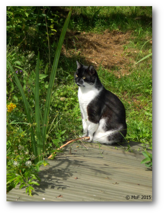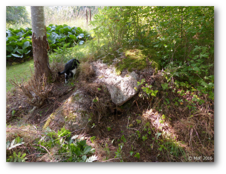 I fredags hade sommargrannen psykologen bjudit in oss på eftermiddagskaffe/‑te. Mia gjorde oss sällskap i vanlig ordning trots att hon led av värmen. Lyckligtvis låg det mesta av vägen i skugga.