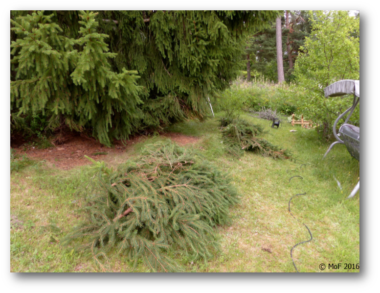 För 30e dagen i följd(!) skiner solen på Udden. Temperaturen är redan på morgonen uppe i nästan 20°. Oss är det inge’ synd om, men växtligheten håller på att duka under. Till och med syrenerna slokar, dom som brukar tåla det mesta.