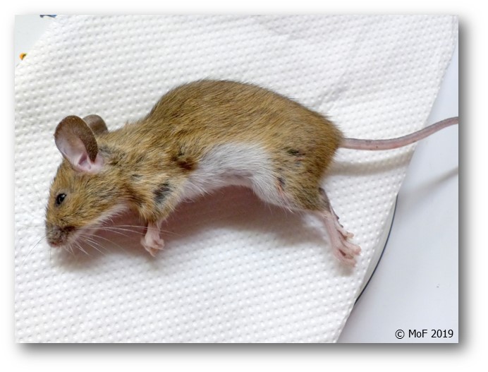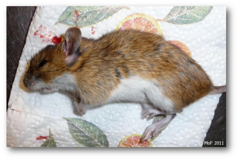 Till slut lyfte jag bort blomlådan, träbiten den stod på och vips sprang musen iväg och gömde sig bland bergenian i stället. Hur kunde jag nånsin tro att hon inte visste var den höll till? Bilden är tagen från ett något senare jaktmoment.