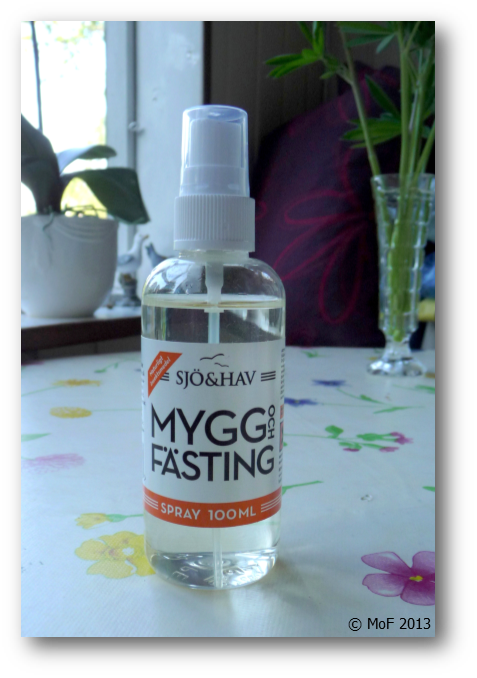 På flaskan står det Mygg och fästing. Av allt att döma gillar fästingarna preparatet för jag hittade nyss en fästing som kröp på vristen. Vintern har trots allt en del fördelar!