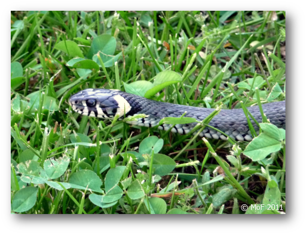 När jag cirka tio minuter senare kollade gräsfläcken var ormen borta, vilket jag hade räknat med och gladde mig över, ormar är nyttiga djur. Men givetvis skvallrade jag inte till Mia, hon behöver inte alls veta att hon blev snuvad på ”konfekten”. 😀