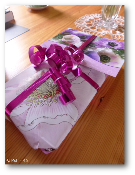 PresentDen tjusiga blombuketten och den roliga presenten upp­skat­tades storligen. I fortsättningen lever vi på stor fot på Udden. 😀