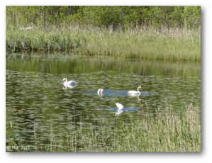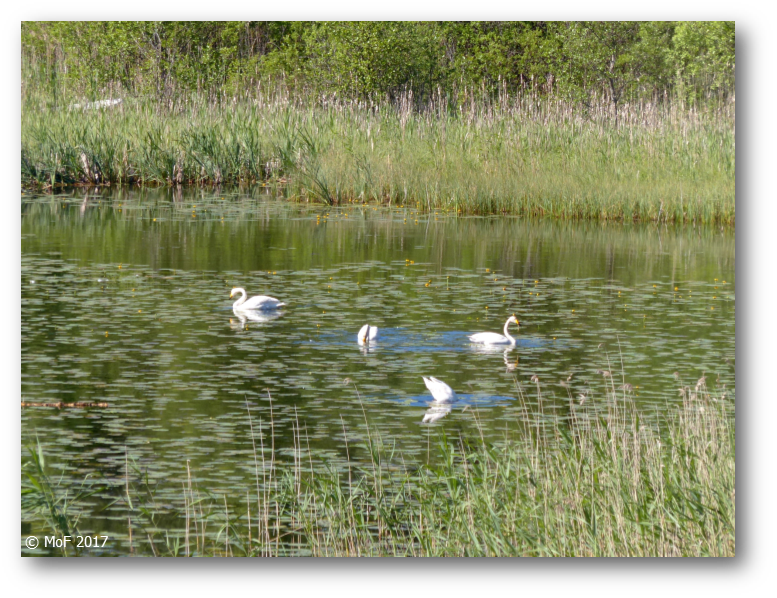 I förmiddags fick Husse syn på celebra besökare i viken. Sju sångsvanar betade ivrigt bland vatten­växterna. Måltiden avverkades i rask takt, sen drog dom i maklig takt till andra nejder. Så många svanar på en gång har jag nog inte sett tidigare i vår vik (på bilden syns bara fyra av dom).