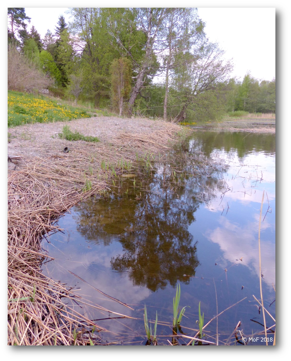 Idag har vi städat stranden, eller rättare sagt vattnet intill. En mängd torra vasstrån hade drivit ihop till små högar som vi beslöt ta rätt på för att förhindra dom från att multna och förbruka vattnets syre. Än så länge ligger högarna strax ovanför vattenlinjen, men så småningom ska dom flyttas längre upp på land.