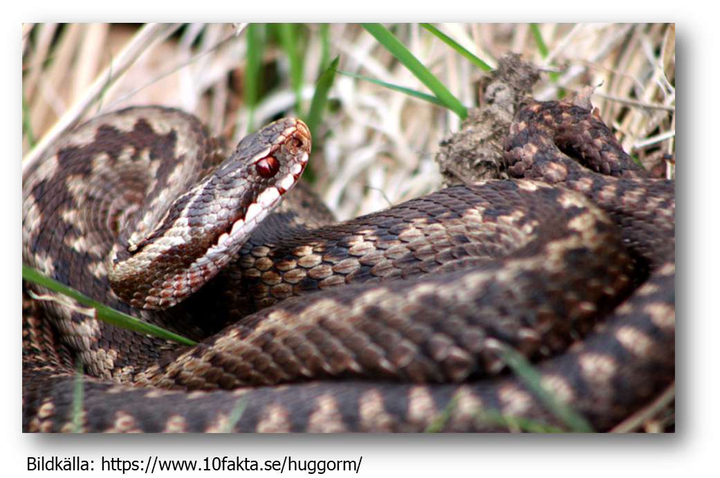 Husse menade att den kanske var död, men när jag kollade nyss, hade den huvudet i ett annat läge, så den lever nog. Från och med juni är huggormen fridlyst också i vårt land, vilket gläder mig. Ormar är nyttodjur.