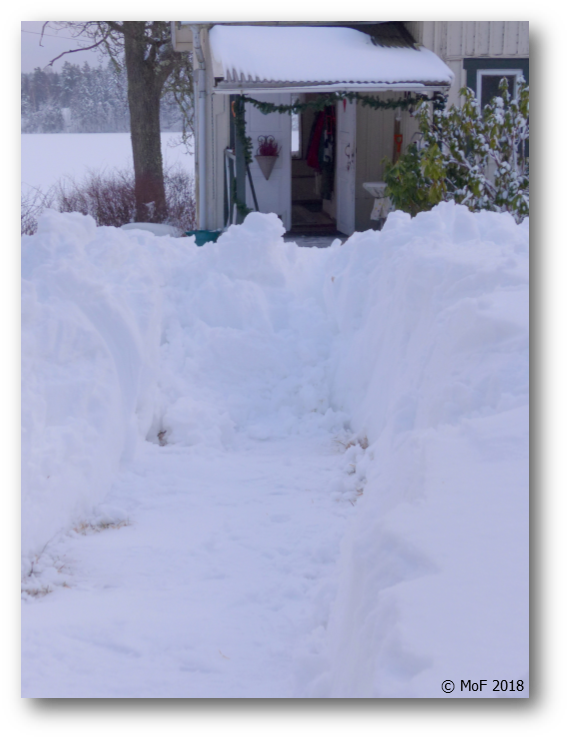 Väglagets bokslut är granskat, Husse skottar dagligen, en Skrivlördag är genomförd, jag lagar mat uppåt väggarna och har haft eld i baken. Mia bojkottar snö.