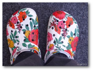 Efter halva tiden insåg jag att jag var på tok för varmt klädd. I synnerhet om fötterna. Vintercrocsen behövde bytas ut mot sommardito. Sagt och gjort. Fötterna blev genast gladare.