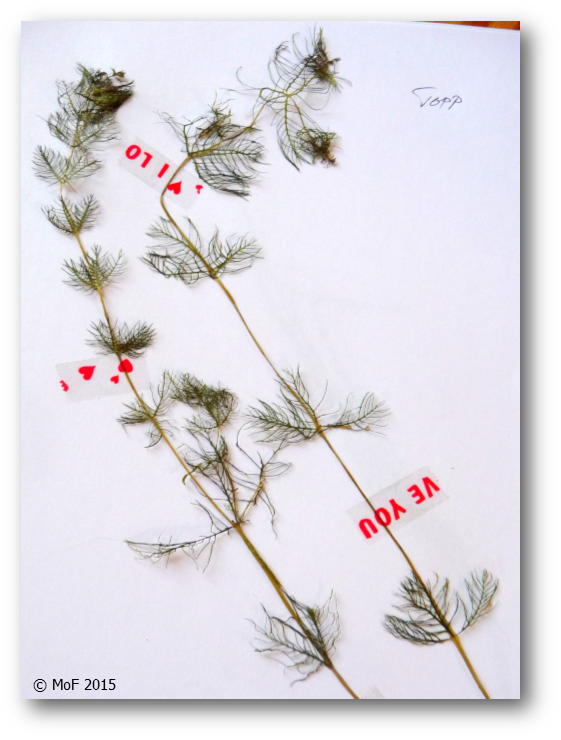 Idag tog jag bort sjögräsexemplaret ur den s k växtpressen (se bild i inlägget 7.8). Det märktes tydligt att det snart är 100 år sen jag senast torkade växter… Förhoppningsvis ska det ändå gå att artbestämma den.